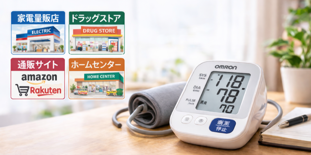 血圧計が買える場所は思っているより多く、身近なお店から大手通販サイトまで幅広く取り扱いがあります。代表的な購入場所は次のとおりです。