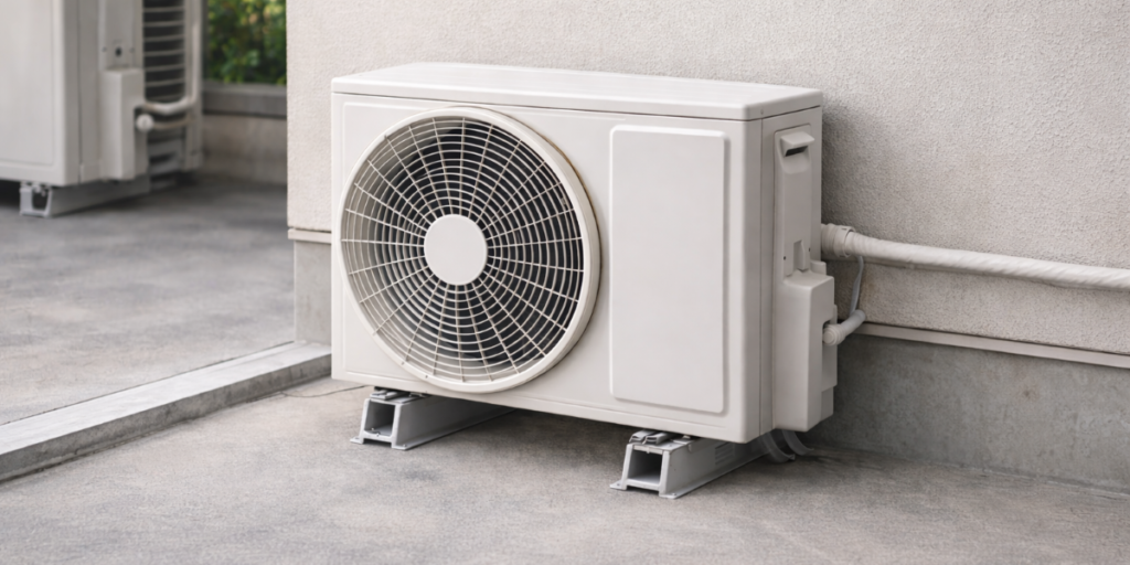 次に重要なのが設置場所です。室内機を取り付ける壁の状態、コンセントの形状、配管を通す穴の有無、室外機を置くスペースなどは、購入前にある程度確認しておくとスムーズです。特に買い替えではなく新規設置の場合、追加工事が発生しやすくなることがあります。