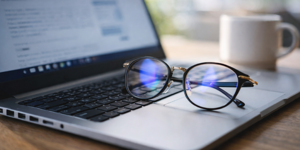 さらに、普段から度入りメガネを使っている人は、ブルーライトカット機能をレンズに追加する方法も検討したいです。度なしメガネを重ねるより快適なことが多く、日常使いしやすくなります。単独のブルーライトメガネを買うか、普段のメガネに機能を入れるかは、使い方によって決めるとよいでしょう。
