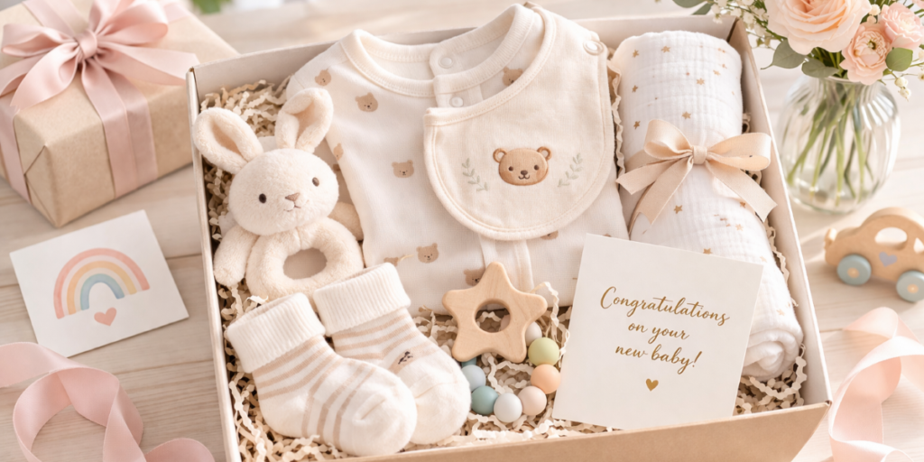 タオル類やガーゼ類は毎日使いやすく、出産祝いとして安定した人気があります。特別高級なものでなくても、肌触りがよく、吸水性が高く、洗濯しやすいものであれば実用性は十分です。華やかさがほしい場合は、箱入りやセット商品を選ぶと贈り物らしさが出ます。