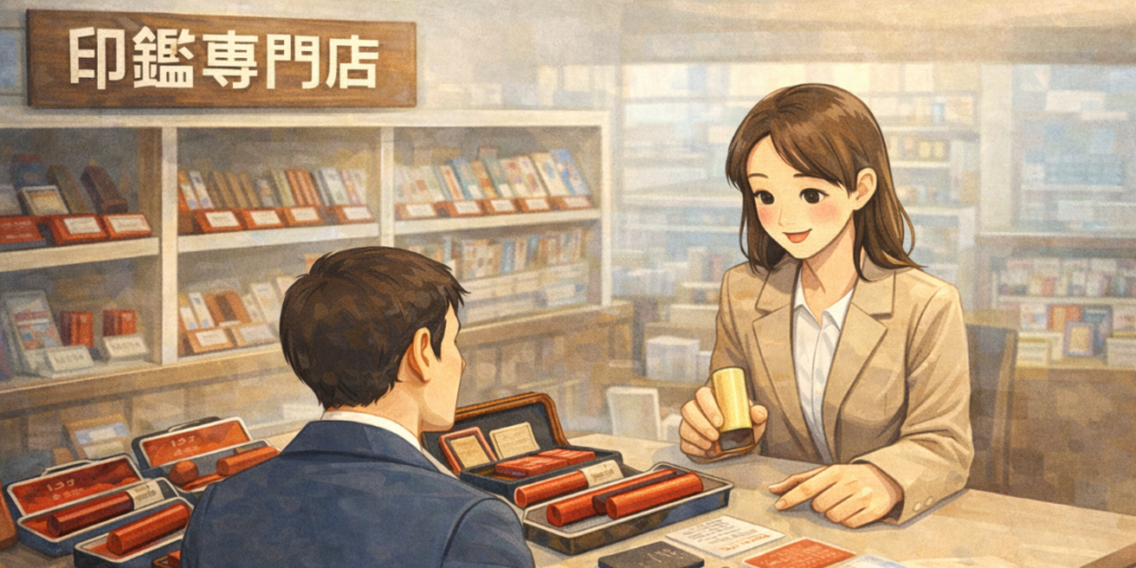 このうち、銀行印向きなのは主に印鑑専門店とネット通販です。ホームセンターや文房具店でもオーダー作成に対応している場合は候補になりますが、既製品中心の売り場だと銀行印にはやや不向きです。100円ショップや簡易的な既製印は、認印としては便利でも、銀行印としては優先度が下がります。