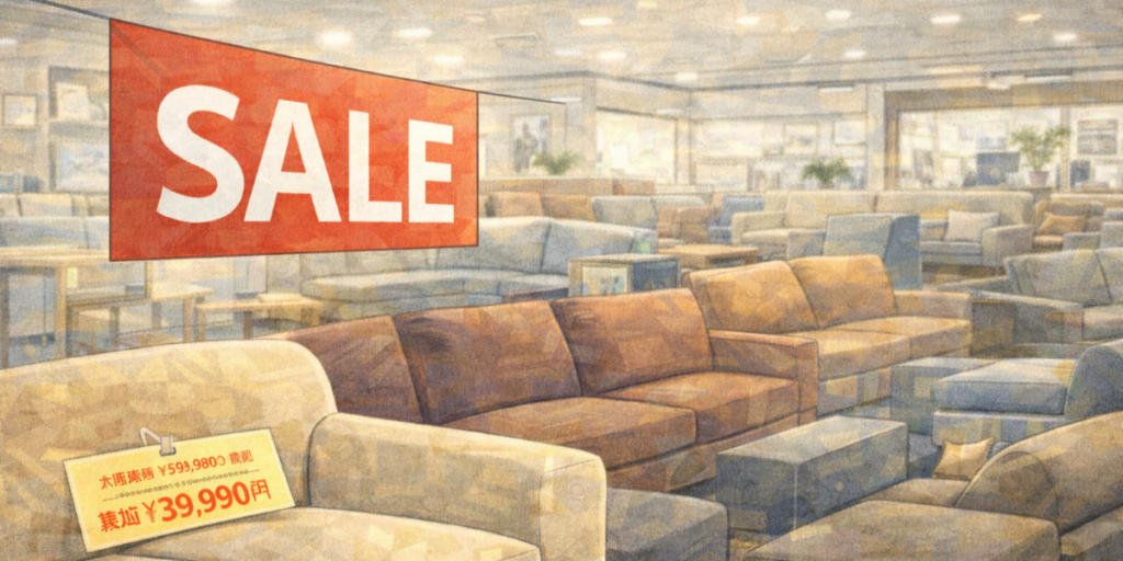少しでも良いものをお得に買いたいなら、アウトレットも有力な選択肢です。アウトレットでは、展示品、型落ち品、在庫調整品などが通常価格より安く販売されることがあります。そのため、本来なら予算オーバーだったソファが現実的な価格で手に入ることもあります。